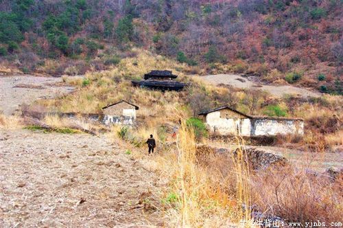 瓦窖岗与甘露寺仅隔一沟一岗,在过二郎山遂道到泸定县城之间的公路下。瓦窖岗没有什么扯眼的风景,就是一长段古道,两三所民居。古道在荒草中逶迤,未倒的荒草,在阳光下泛着金色,三五株桃树与梨花,盛开在院前山坡,方显出春意。因为现代交通建设的原因,到处的古道都被切割得一段一段的,又因道路荒废已久,山崩水打,许多地方早已堵塞,难以窥其全貌。瓦窖岗木结构的民居已无人居住,门上都上了锁,没有了鸡鸣狗叫,没有了炊烟缭绕,落寞而又寂寥。古道从民居门前穿过,两相衬映,让人感觉是否是到了上一个世纪