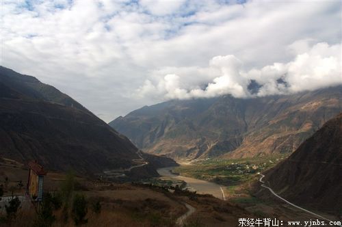 古道虽已荒芜,却是村民劳作和往来的必须,因为行人稀少,所以荒草齐腰。康熙年间,泸定桥建成,经泸定的茶马古道就由他路改为经甘露寺经过,老照壁前长长的歇气台,是背脚营生的老弱妇孺放哨打尖的地方。饥者歌其食,劳者歌其事,现在,我们是在体验当年背夫的艰辛,当年的背夫,却在身爱生活的艰辛。站在寺前向前望,国道路108道、211道、茶马古道和大渡河两岸的乡村公路,象一条条彩带,舞动在雪山下、白云里。从云缝里撒下的阳光,象是给对岸的杵坭泼上一层油彩,清新而又迷人。